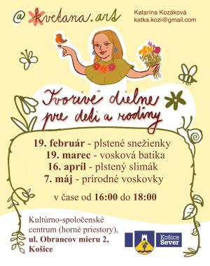 Pozvánka na výtvarné dielne pre deti aj dospelých pod vedením Evky Bombarovej do Kultúrno-spoločenského centra.